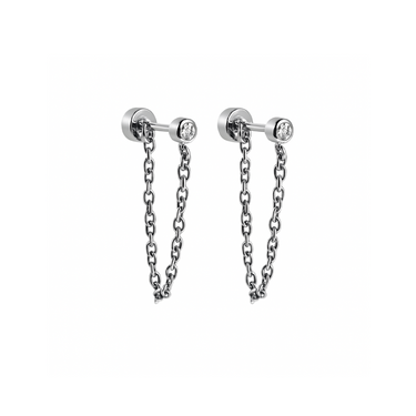 Chained 3mm framed diamond style studs - Silver