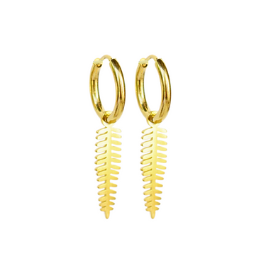 Dangled fern charm hoops - Gold
