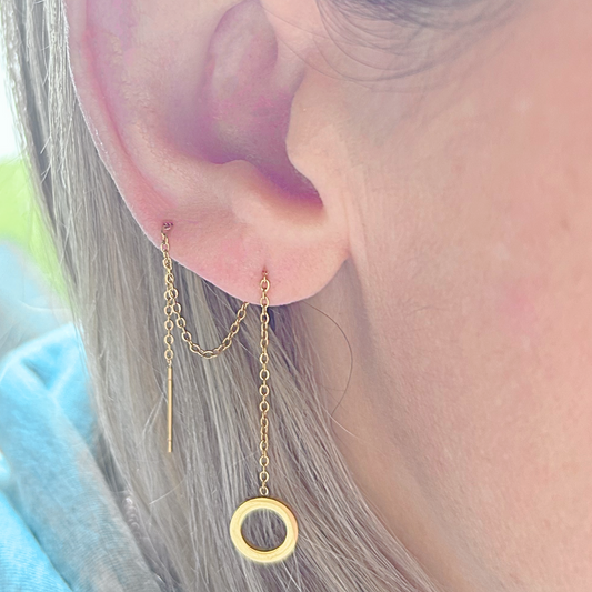 Thread through circle chained stud - Gold