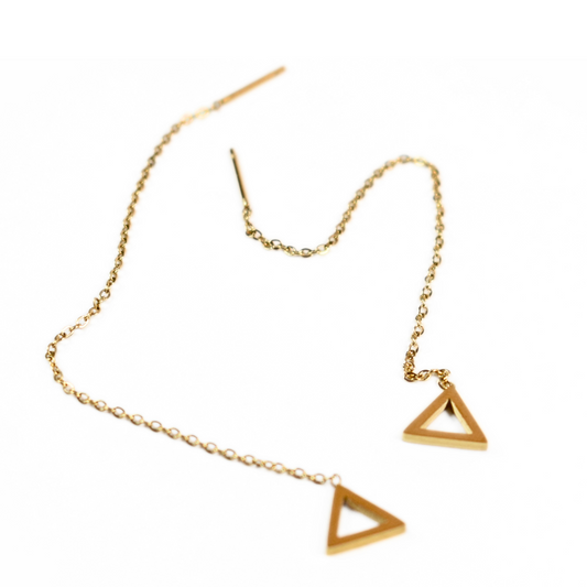Thread through triangle chained stud - Gold