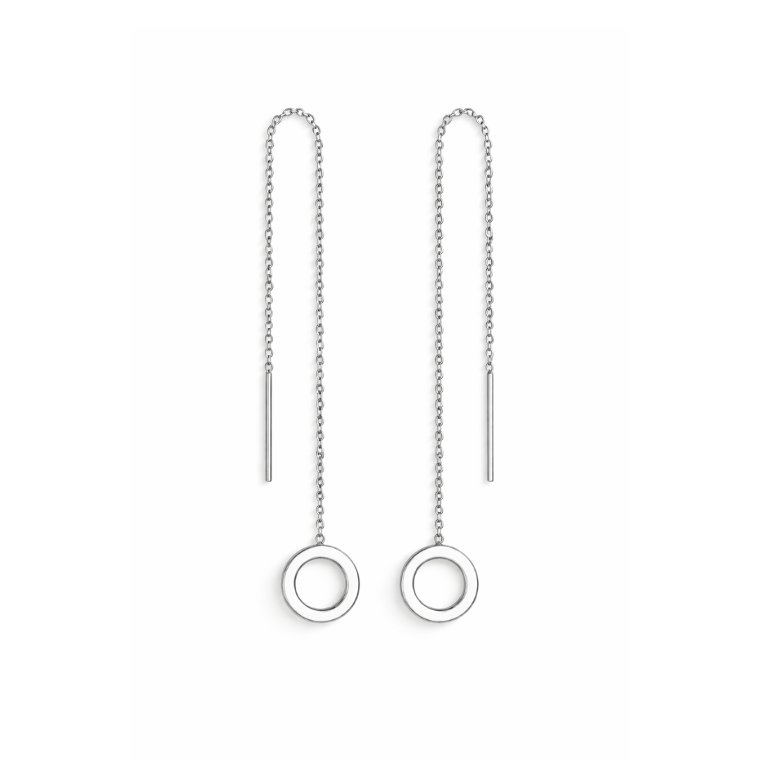 Thread through circle chained stud - Silver