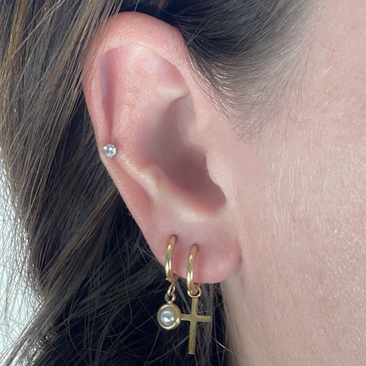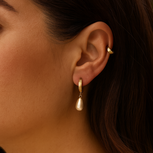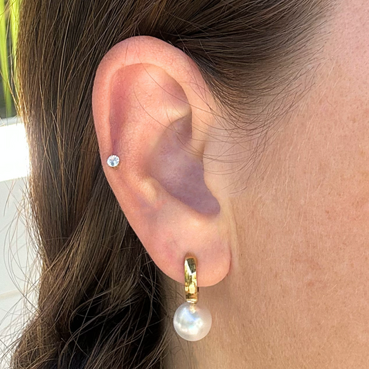 10mm Sparkled fresh water drop pearl hoops - Gold