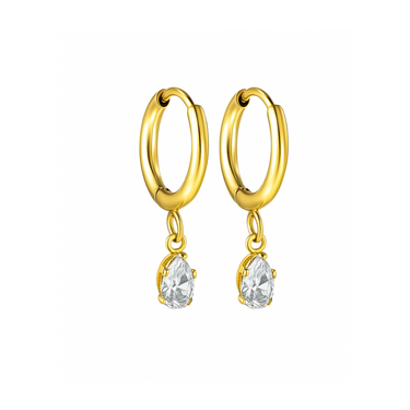 8mm Dangled tear drop diamond style hoops - Gold