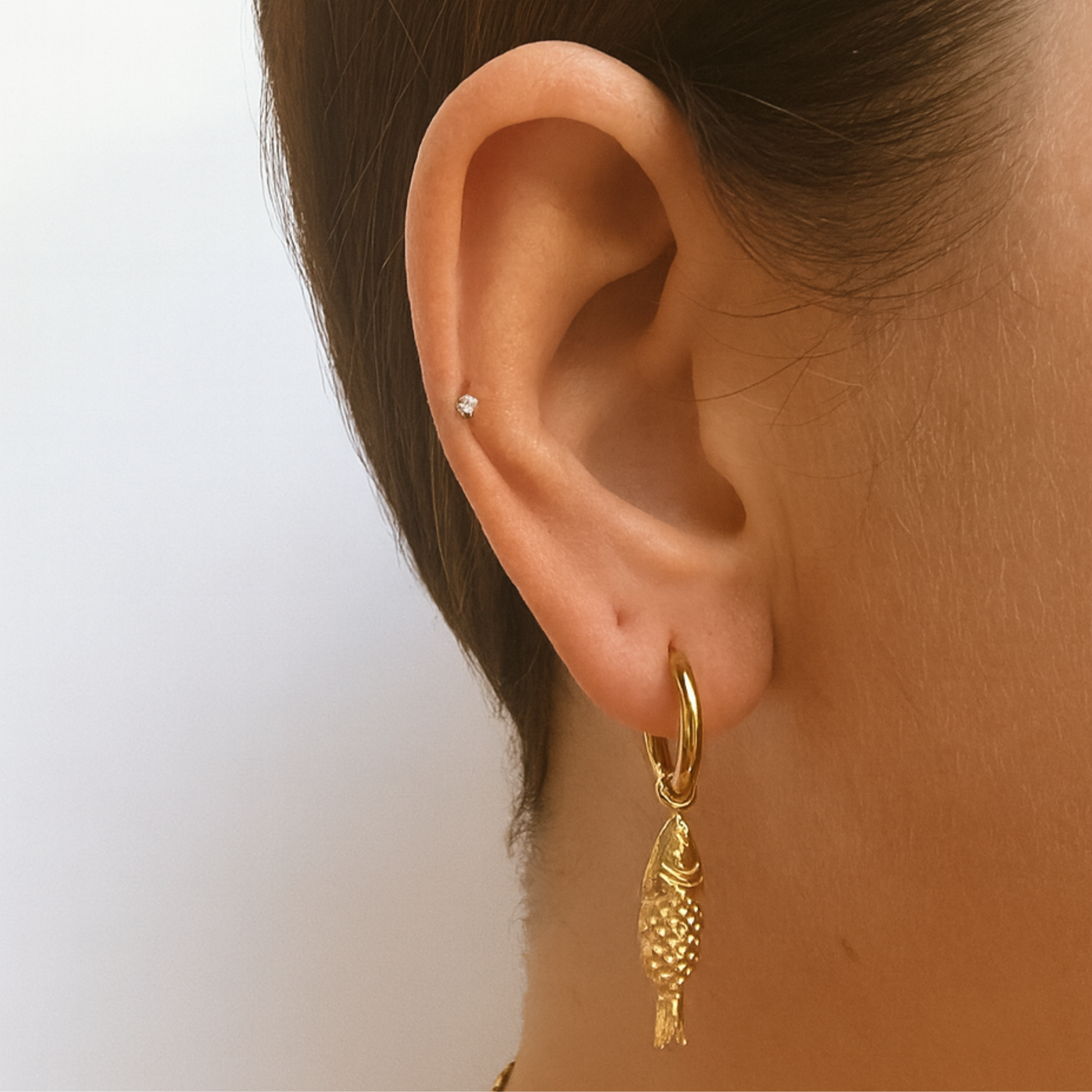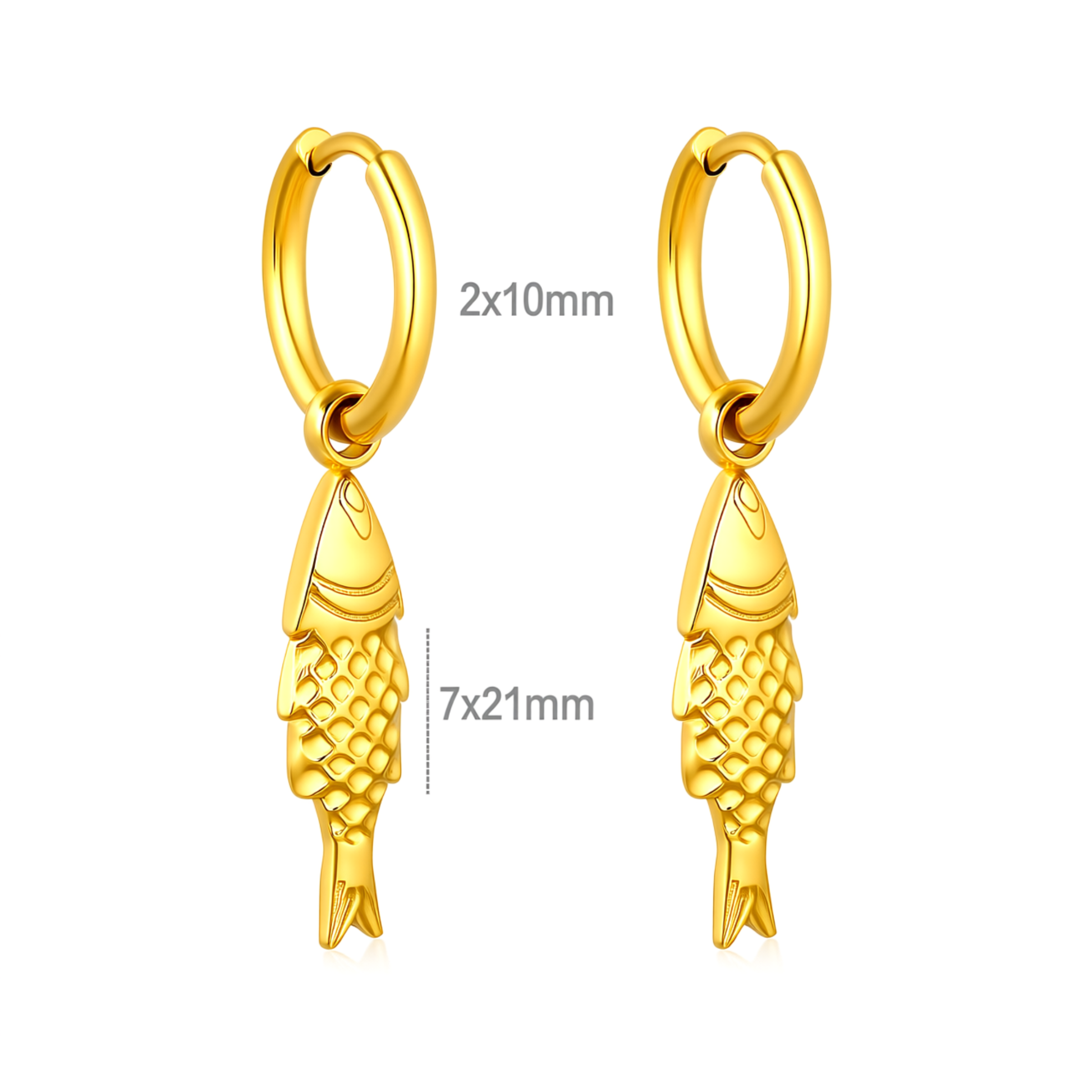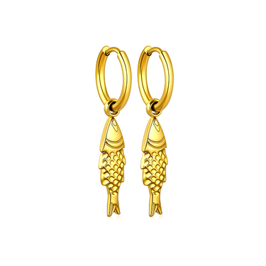 10mm fish charm hoops - Gold