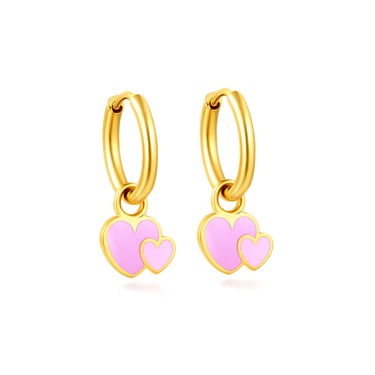 10mm pink heart charm hoops - Gold