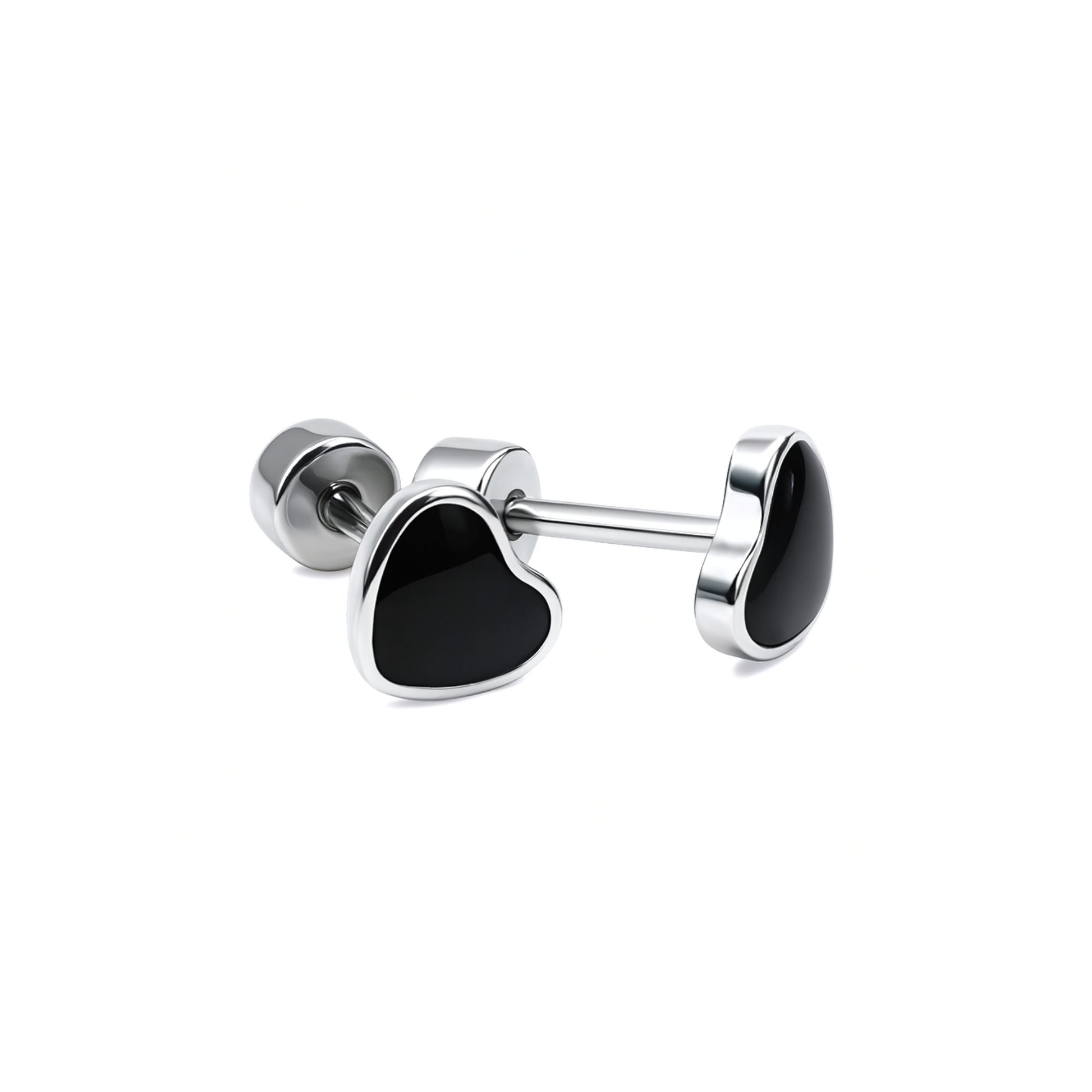 Framed black heart studs - Silver