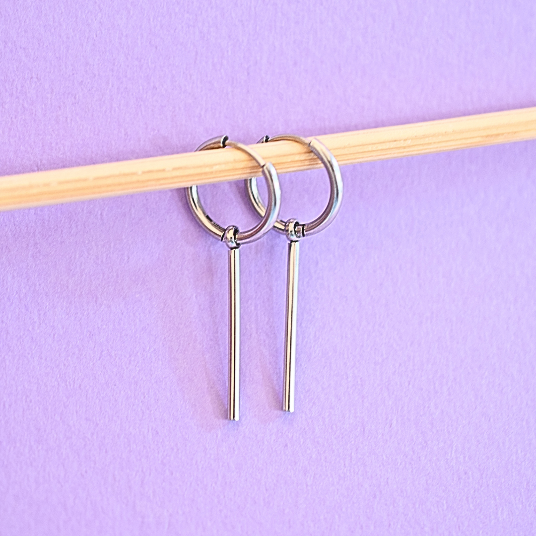Thin extra length cylinder hoops - Silver