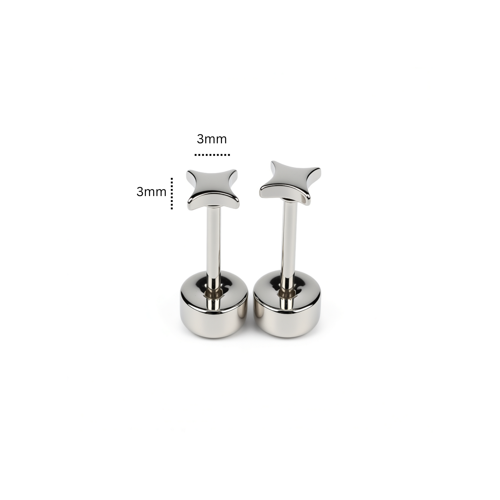 Our flat screw on backs are absolute comfort and fit our motto of 24/7 wearing earrings ! No more earring backs poking your head while sleeping ! Please make sure to check that they are still tight every now and then and tighten them up if needed ! Most of our studs fit each others backs and are interchangeable. For the people that prefer the snug fit of a normal butterfly we have included a pair of silicone backs as an alternative.